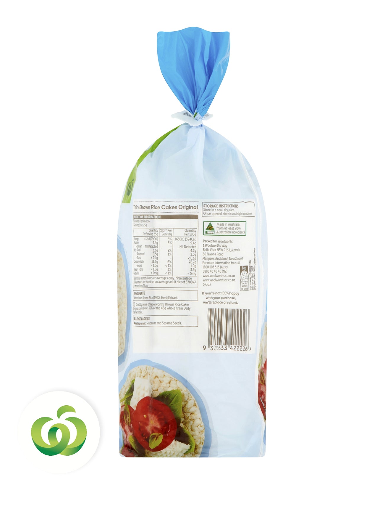 WOOLWORTHS THIN RICE CAKES ORIGINAL 150G